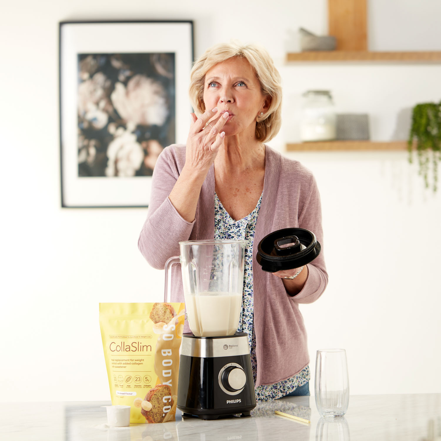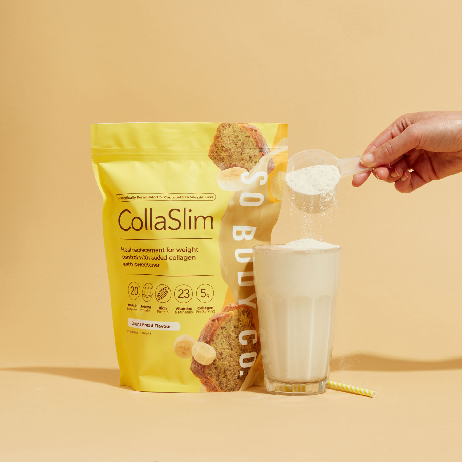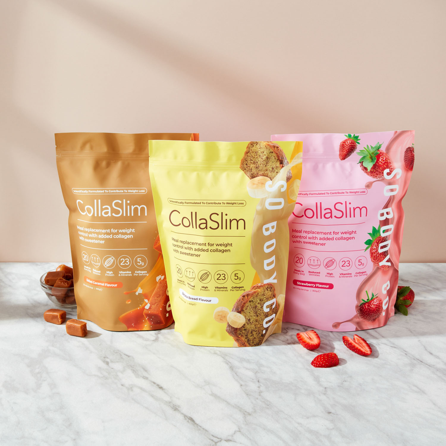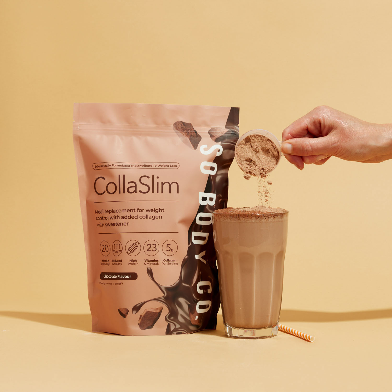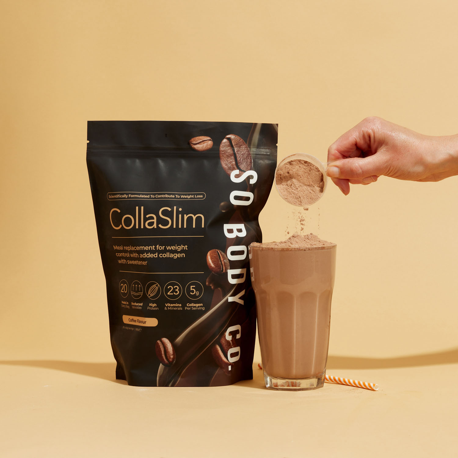 To showcase their range of delicious flavours to their target demographic, we collaborated with models to create relatable lifestyle shots, helping customers envision themselves as part of the So Body Co journey to renewed confidence. Each shot was carefully styled with colour schemes and thoughtfully selected accents that reflect the essence of each individual flavour, creating an inviting atmosphere that resonates with customers and showcases the positive experience that So Body Co offers.