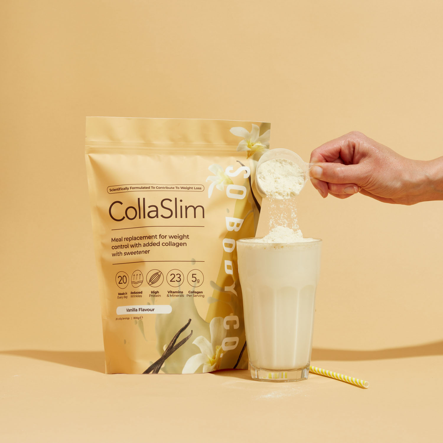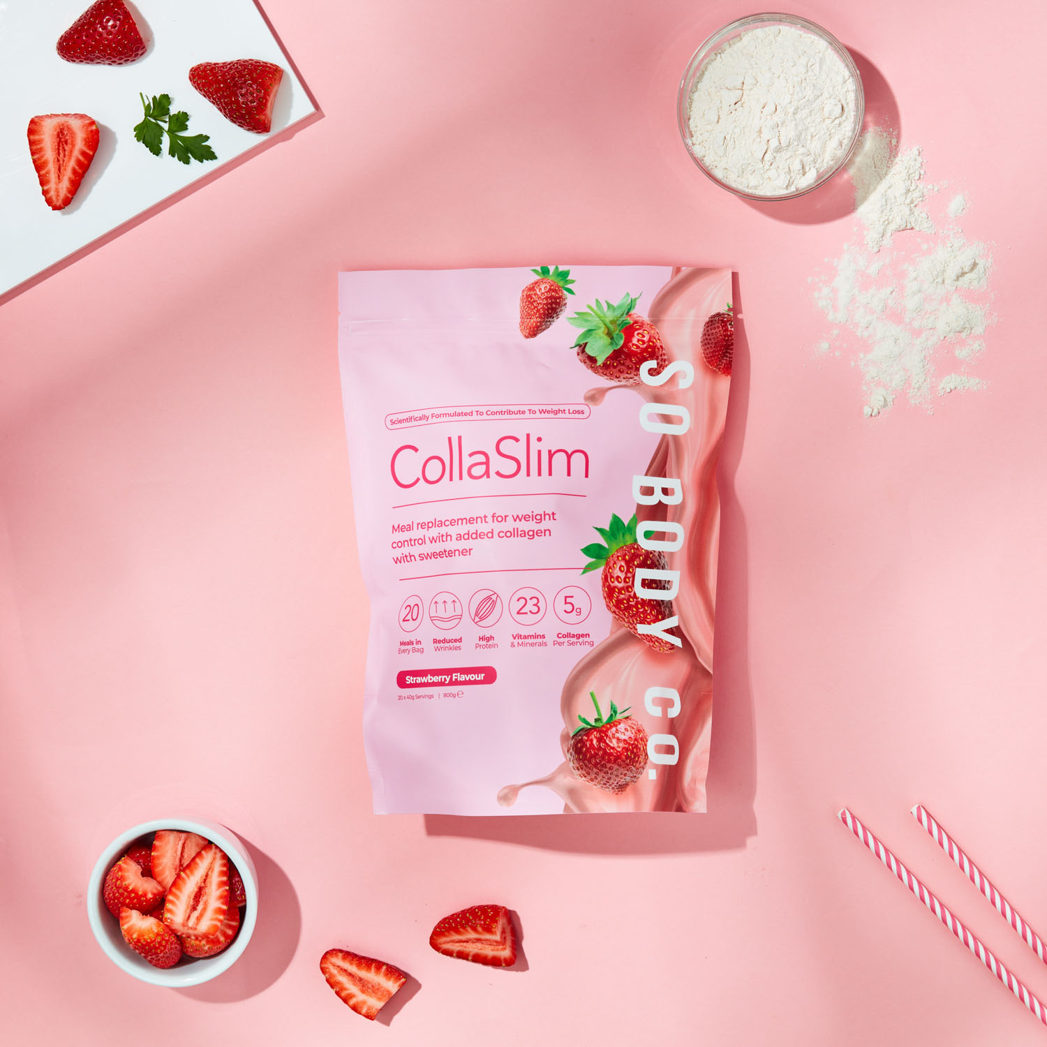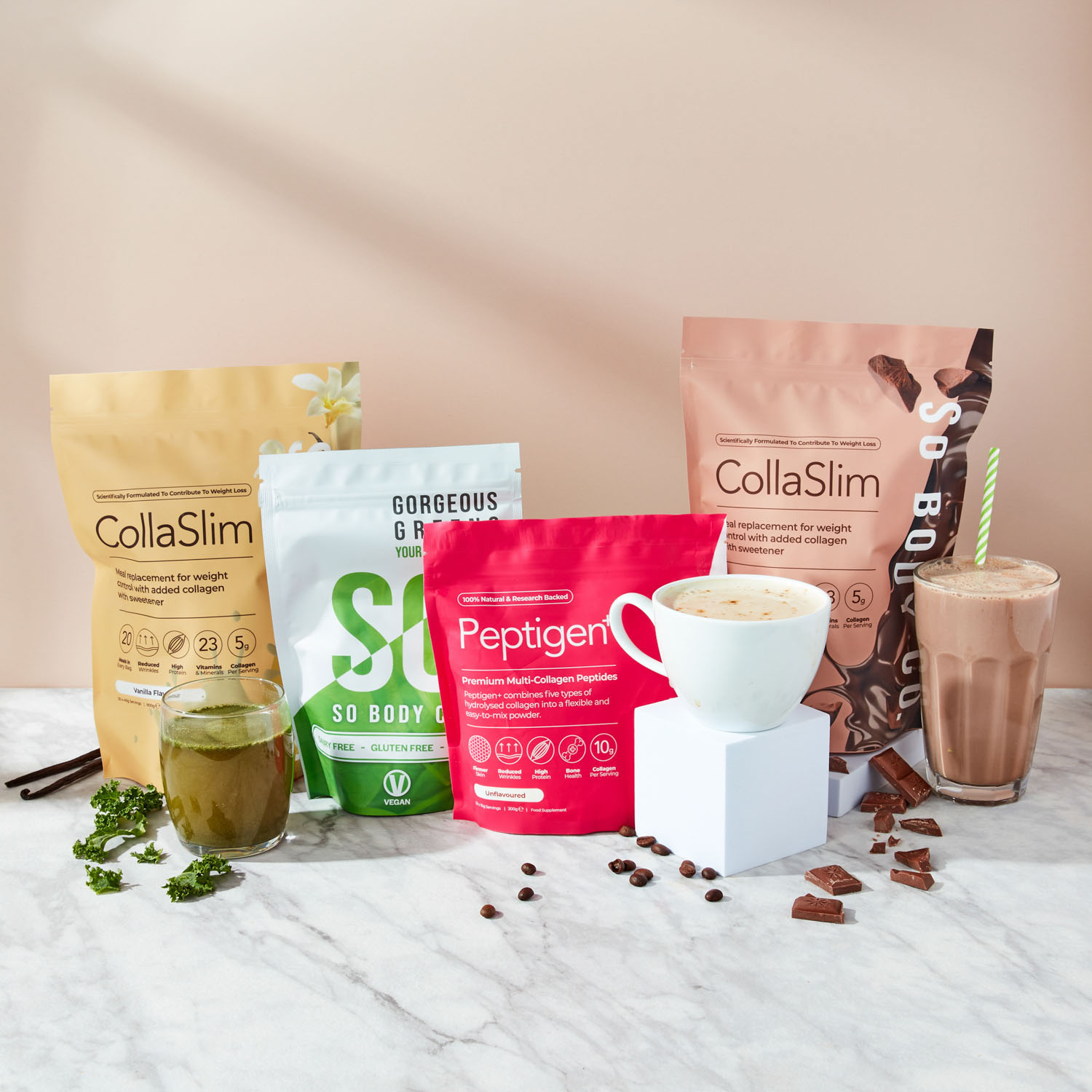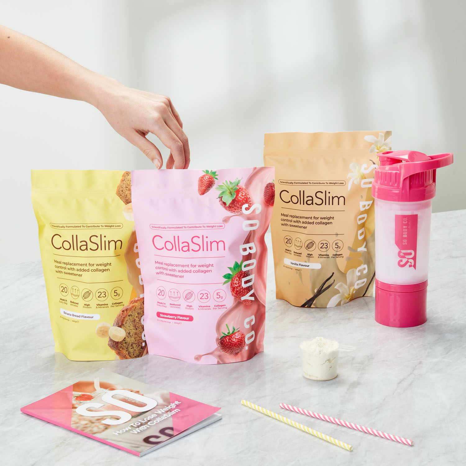 To showcase their range of delicious flavours to their target demographic, we collaborated with models to create relatable lifestyle shots, helping customers envision themselves as part of the So Body Co journey to renewed confidence. Each shot was carefully styled with colour schemes and thoughtfully selected accents that reflect the essence of each individual flavour, creating an inviting atmosphere that resonates with customers and showcases the positive experience that So Body Co offers.