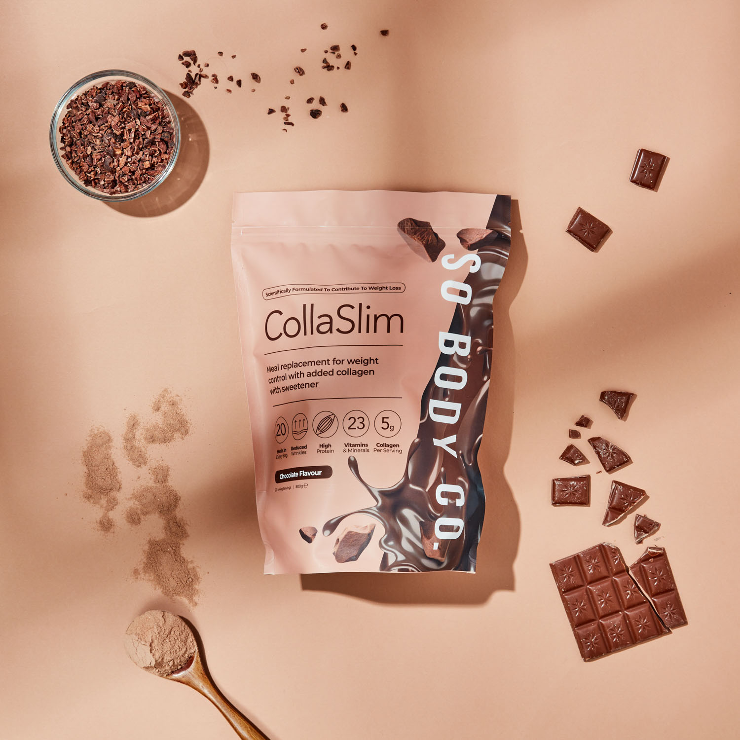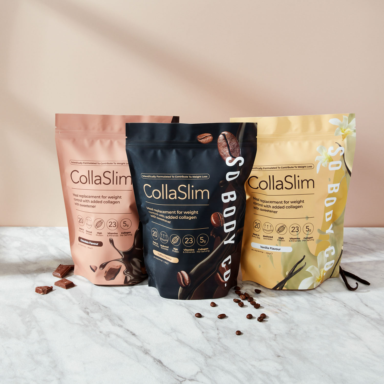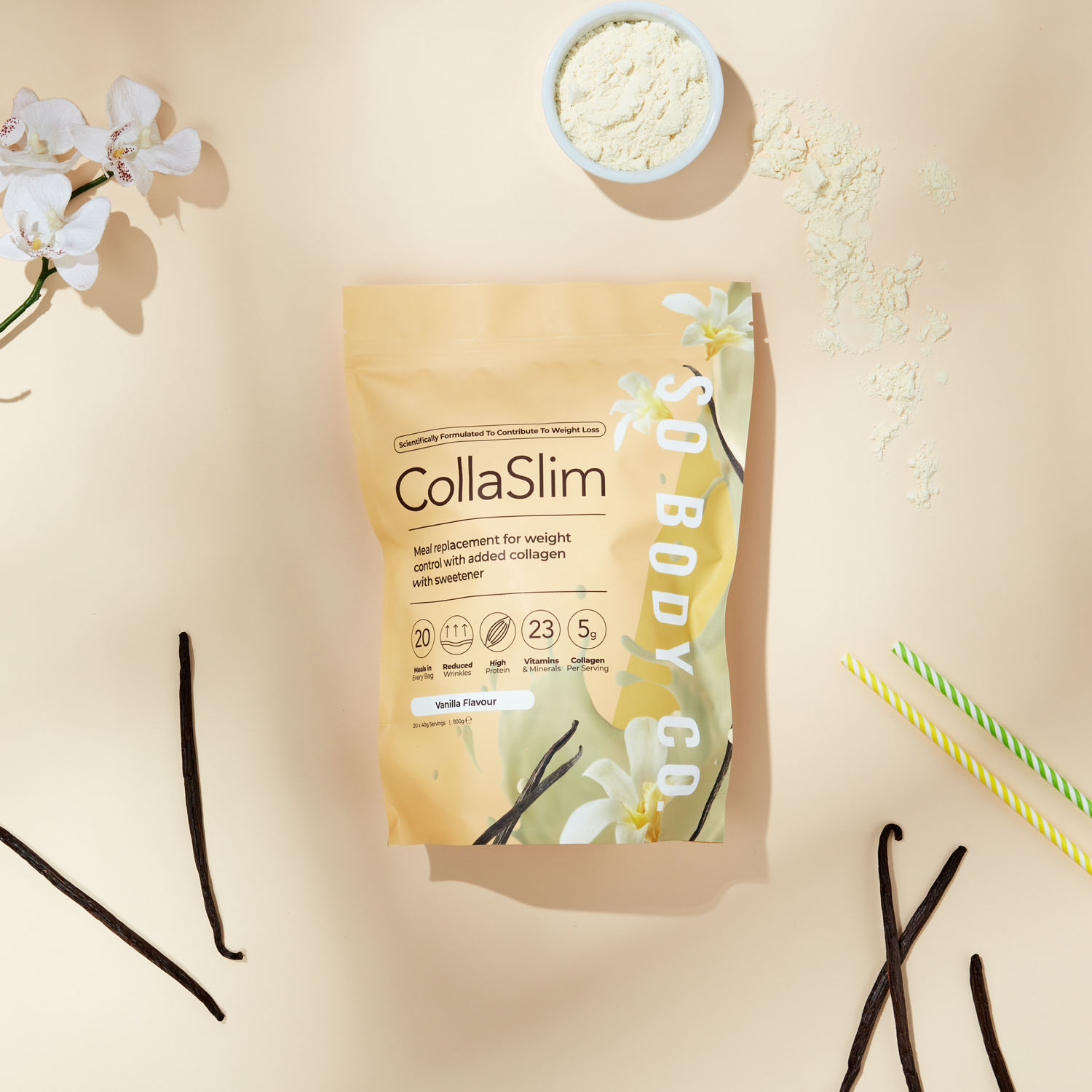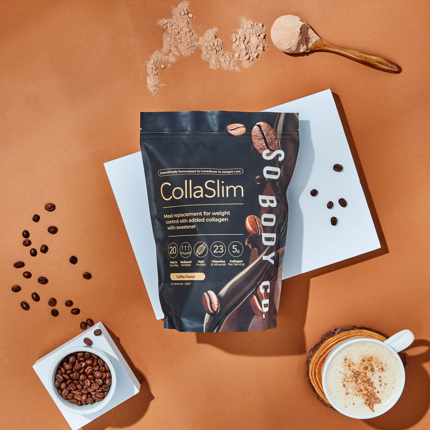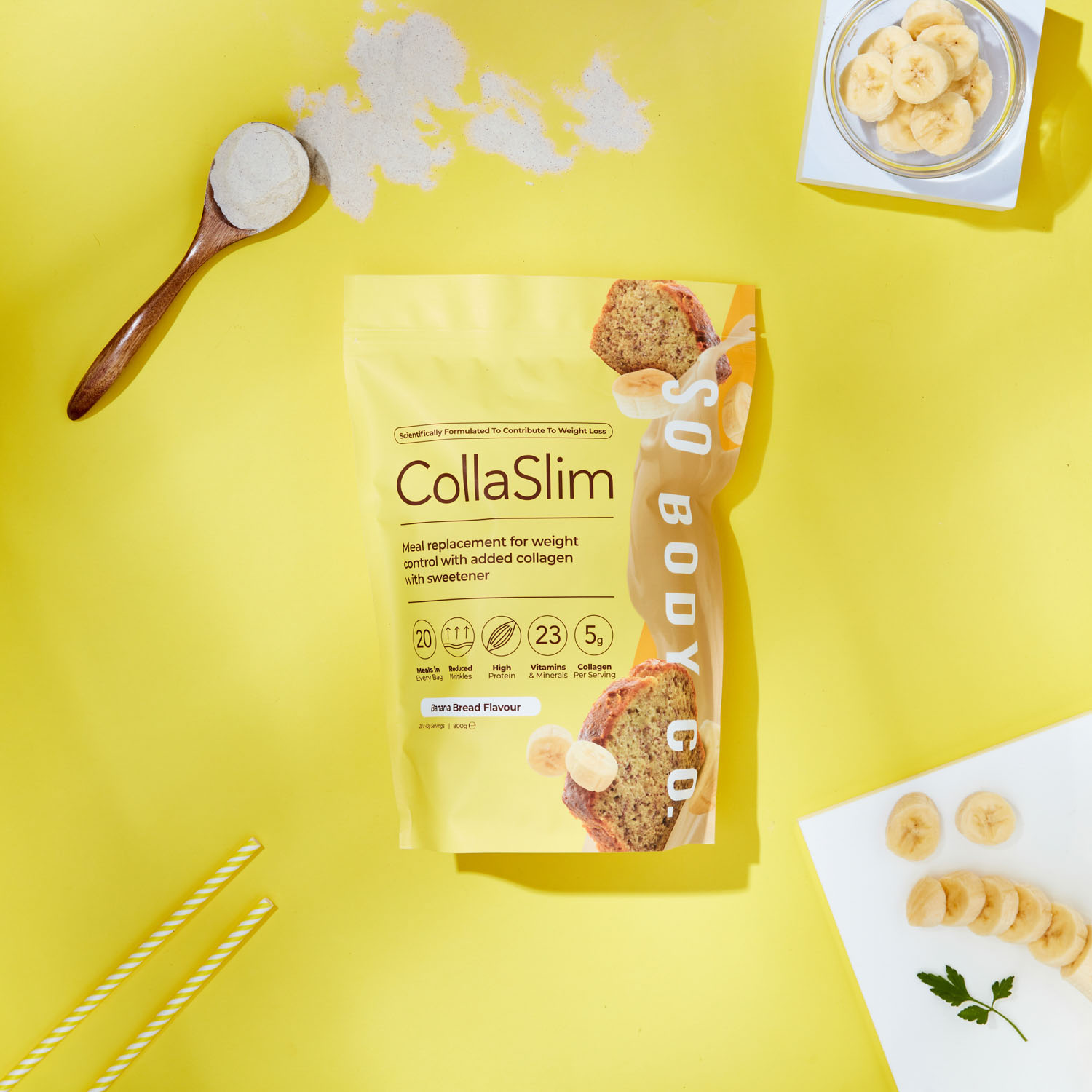 To showcase their range of delicious flavours to their target demographic, we collaborated with models to create relatable lifestyle shots, helping customers envision themselves as part of the So Body Co journey to renewed confidence. Each shot was carefully styled with colour schemes and thoughtfully selected accents that reflect the essence of each individual flavour, creating an inviting atmosphere that resonates with customers and showcases the positive experience that So Body Co offers.